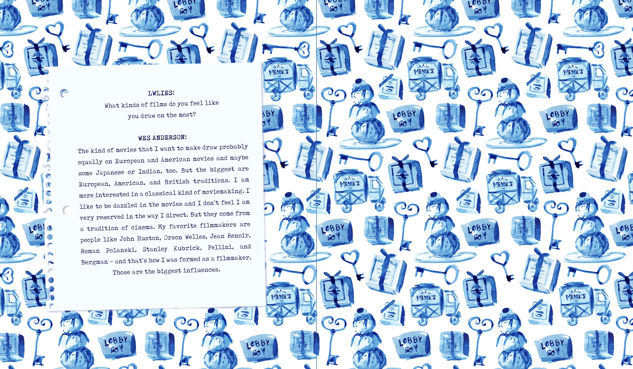 - I found it difficult to figure out the cover composition so spent weeks working on different outcomes. I wanted my work to be recognisable in relation to 'The Grand Budapest Hotel' without being a replica of the film or other 'fan' artwork created.